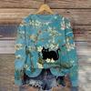 2024 Ny Dam Huvtröja Retro Femmes Söt Katt Konst mönster 3D-tryck Sweatshirts Höst Vinter Långärmad Dam Lös Pullover
