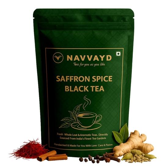 Navvayd Saffron Spice Black Tea, With Kashmiri Saffron & Spices for Energy Boosting, Loose Leaf - Enjoy Hot or Cold (50 Gm)