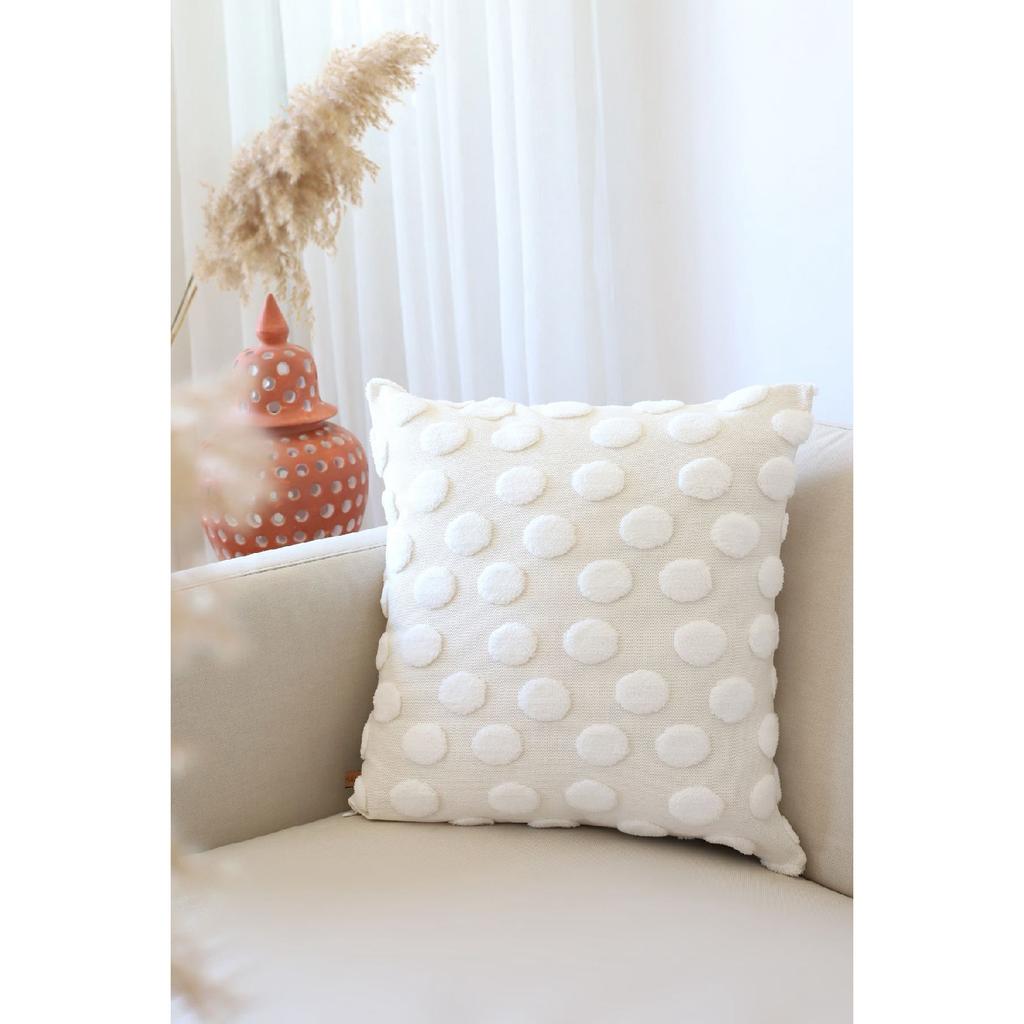 Product description: Cushion cover with heathered fabric base, tufted top, punch look