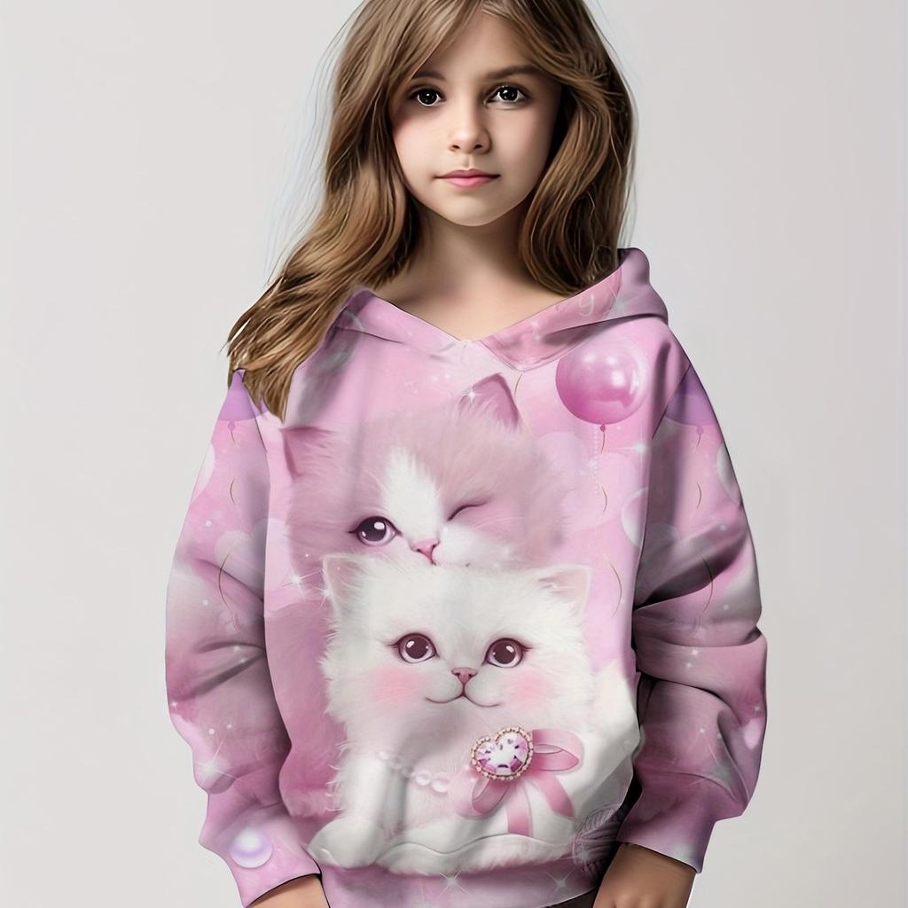 Flickor, Härliga Katter Tryck Trendiga Sweatshirt Toppar Långärmad Hoodie Pullovers Barn Vardagskläder