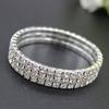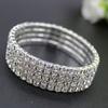 Sparkling Silver Color Crystal Bracelets For Women 3 Rows Rhinestone Stretchy Bracelets Bangles Female Wedding Prom Jewelry