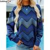 Mode Damtröja Randig Tryckt Huva Lös Topp