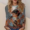Women's funny girl printed T-shirt O-neck long sleeve solid color clothes simple pullover new character printed long sleeve
