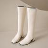 Street Style Fyrkantig Klack Kvinnor Knähöga Stövlar Höst Vinter Mjukt Läder Damer Smala Koncisa Långa Damstövlar