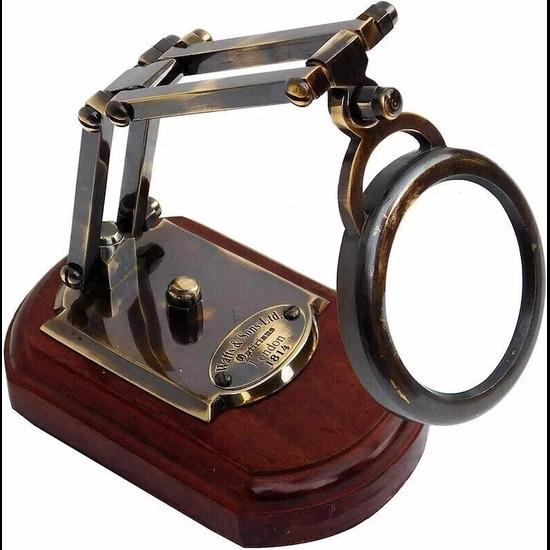 Material : Mässing, Glas & Trä, Klassisk träbas handgjord och massiv mässing med grovt antikt utseende - superklassisk pjäs för ditt kungliga arbetsbord
