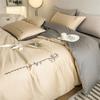 Embroidery Pure Cotton Four-piece Quilt Cover Solid Color Bed Sheet Light Luxury Style Bedding
