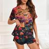 Dam Pyjamas i Issilke Knappar Hemmakläder Halloween Tryckt Kortärmad Satin Pyjamasset