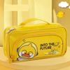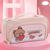 Cartoon Pencil Bag Pen Case Kawaii PU & Canvas Handbag Multi Slot Mesh Pocket Storage Pouch for Stationery