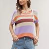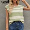 QICED Loose Patchwork Striped T-shirt Casual Pullover Women's Short-sleeved Sweater