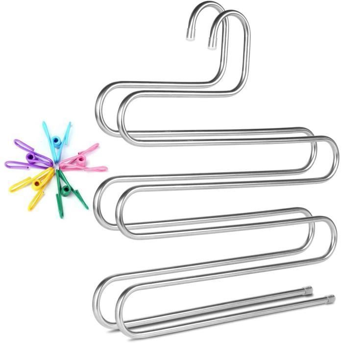CINTRE POUR DRESSING AIDBUCKS Cintre Pantalon 6Clips sont Fournis SType Cintres Antiderapant Pantalons MultiUsages Portemanteau 248