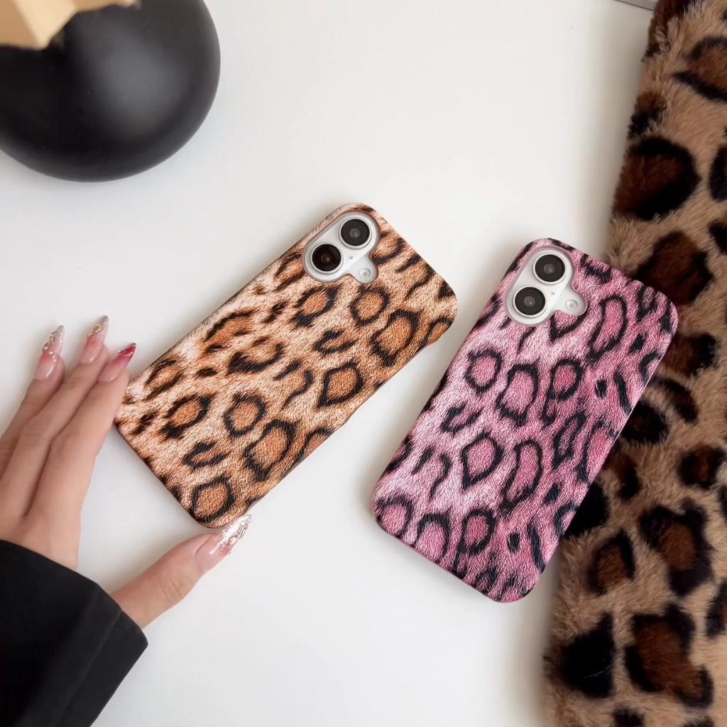Sexigt läder leopardtryck halvskal för iPhone 16 Pro Max 15 14 Plus 13 12 Pro 11 fallskyddsskydd