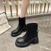 Moderiktiga små koreanska stövlar kvinnor höst/vinter nya tjocka Martin-stövlar med hög klack, temperamentsmå ankelstövlar