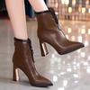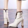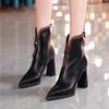 Läder Spetsig Tå Dam Snö Ankelstövlar Höga Klackar Sexiga Skor Chunky Designerstövlar Trend Pumps Vinter Botas De Mujer