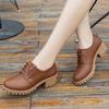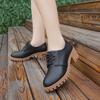 Round Toe Leather Square Heel Lace-Up Mary Janes Platform Pumps Women Shoes Summer Shoes Woman British Wind Student Shoes