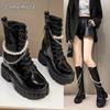 Autumn Winter Platform Leather Pearl Chain Women's Motorcycle Boots Designer Soft-soled Ladies Shoes Fashion Ankle Boots Female