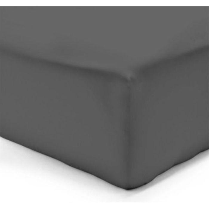 Drap housse - SERENA - 180x200 cm - Anthracite - 100% Coton - Bonnet 25 cm