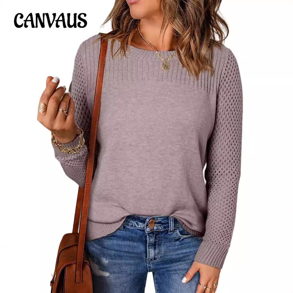 Höst och Vinter Dam Plus Size Rund Hals Långärmad Enfärgad Stickad Tröja Trådad Ihålig Botten Tröja