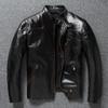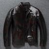 Chinese Size Style RL Top Layer Oil Waxed Cowhide Real Leather Jacket Men Stand Collar Brown Motorcycle Coat Men's Biker Jacket Spring Autumn