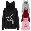 Håll dig snygg och mysig med denna söta och avslappnade huvtröja för kvinnor. Tillverkad av mjukt och bekvämt polyestermaterial, denna långärmade hoodie har en unik touch med kattörondekorationer på huvan och ett lekfullt katttryck på bröstfickan.