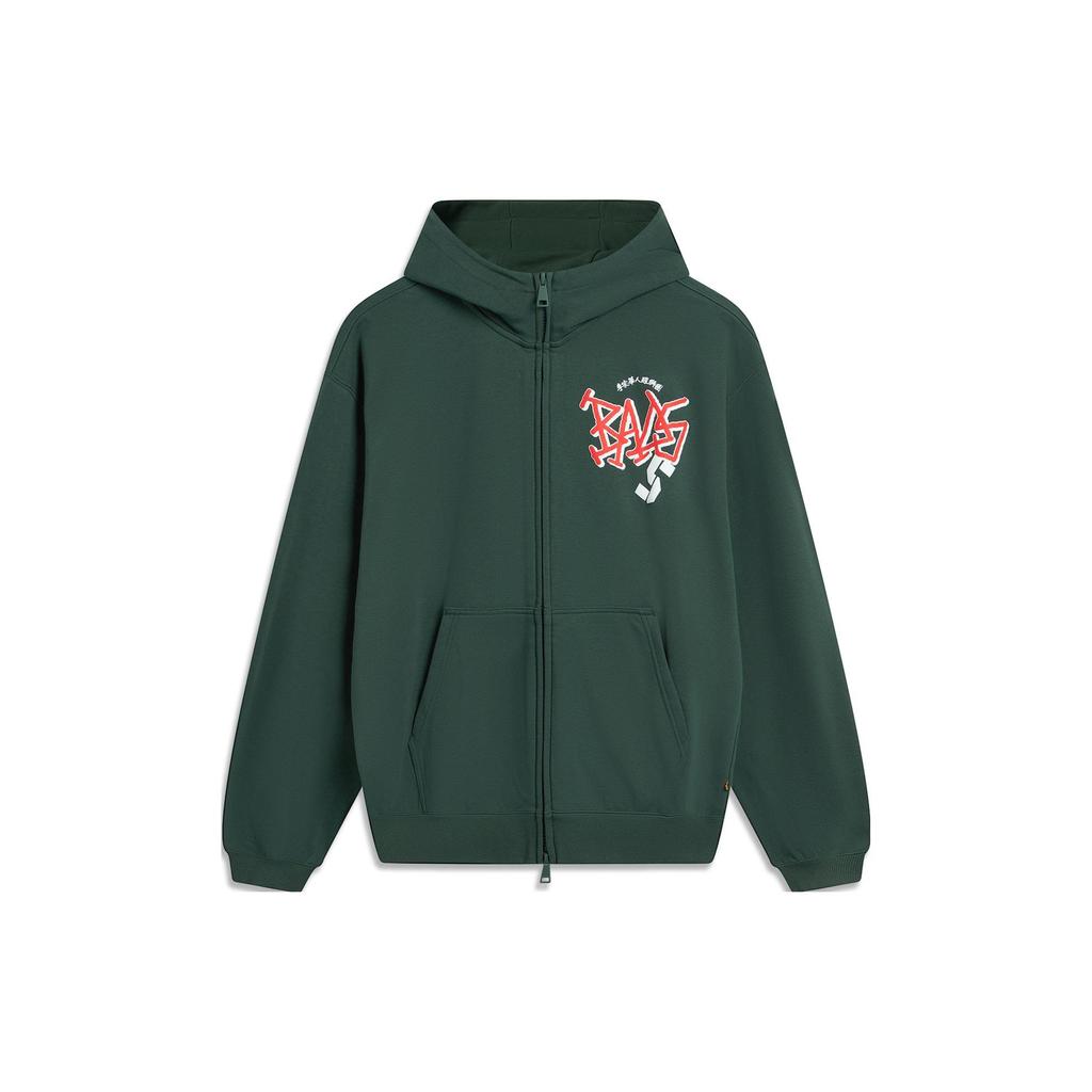Li Ning Badfive Bokstav Dragkedja Hoodie Lös Casual Kofta Unisex hoodies Mörkgrön AWDTE07-2