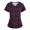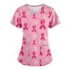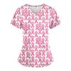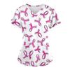 Scrubs Medicinsk Uniform Rosa Bandet Cancerkämpe Grafik Damuniformer V-ringad Kortärmad Toppar med Fickor Scrubs Damer