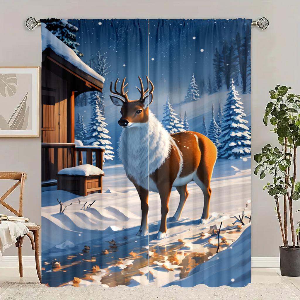 2 delar - Jul - tryckt gardin - Polyestermaterial - lämplig för sovrum, vardagsrum, arbetsrum privat gardin