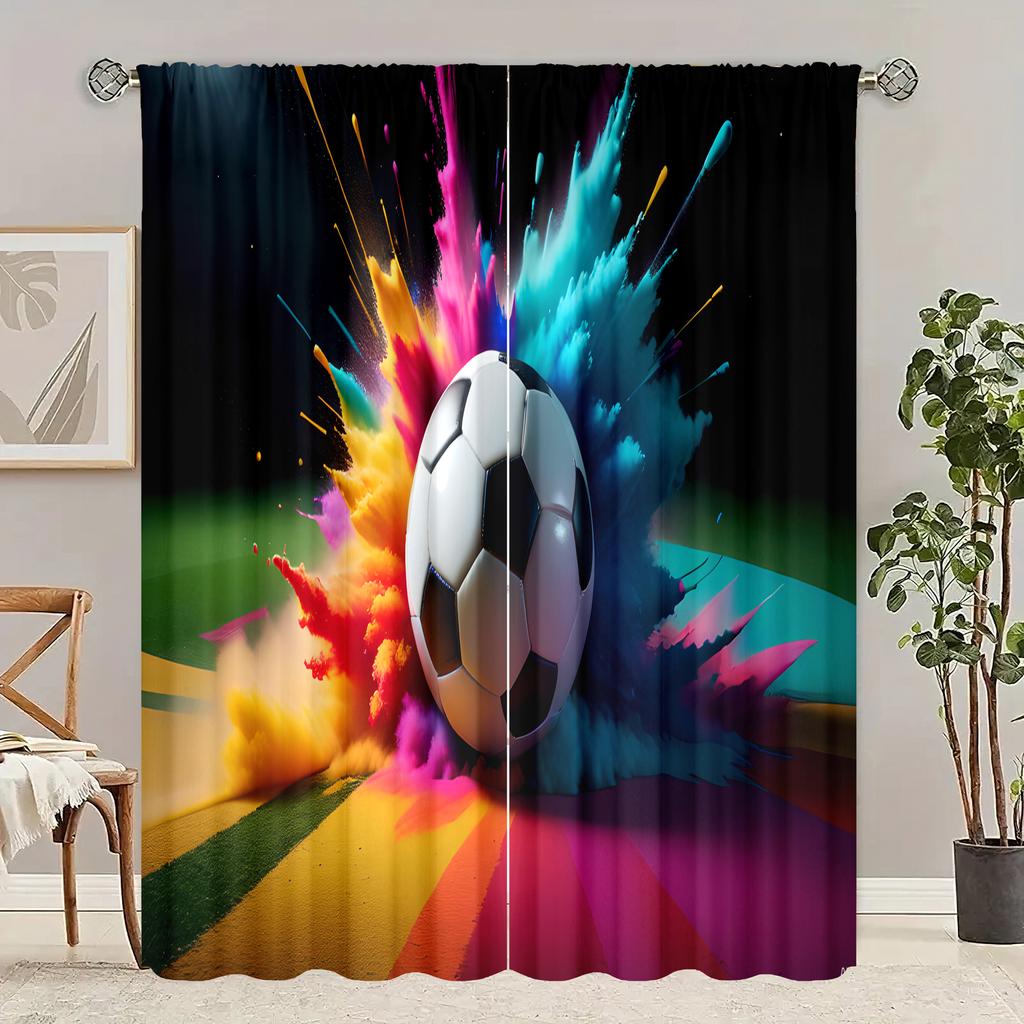 2 pieces - Football - printed curtain - Polyester material - suitable for bedroom, living room, study private curtain