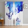 Båt Ankare Ränder Rektangel Vit Tyll Skira Fönstergardiner för Vardagsrum Sovrum Modern Voile Organza Gardiner Draperier