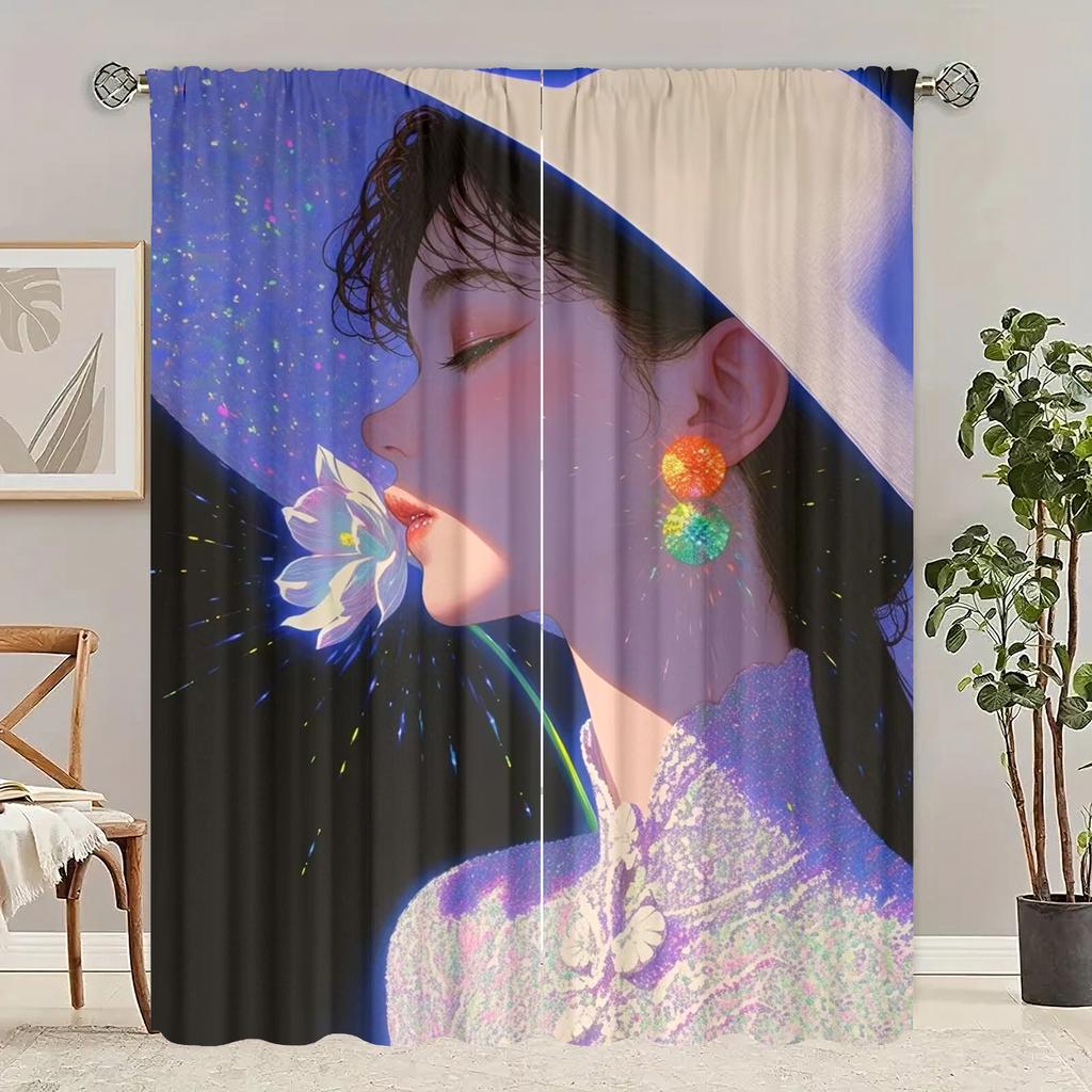 2 delar - Figur - tryckt gardin - Polyestermaterial - lämplig för sovrum, vardagsrum, arbetsrum privat gardin