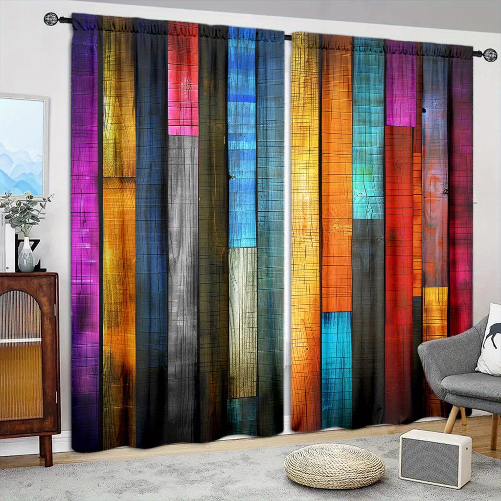 2 st Färgglada Träpanelskarvade Tryckta Gardiner för Heminredning - Stångficka Fönsterbehandling för Sovrum, Kontor, Kök