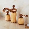 Tuqiu Luxury Rose Gold Bathroom Faucet Brass Jade Basin Faucet Widespread Sink Faucets 3 Hole Hot Cold Sink Faucet Water Tap