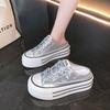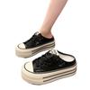 Mode 2024 Vår Höst Damtofflor Mode Baotou Halvtofflor Bär Ny Stil Muffin Snörning Casual Canvas Tofflor för Kvinnor