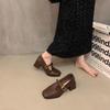Nischdesign Tjock Klack Enkla Skor Loafers Tidig Höst Fyrkantig Tå Små Läderskor Fransk Retro Mary Jane Skor Damskor