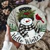 Winter Greetings Carved aluminum foil sign with Holly wreath center attachment, vintage metal tin plate for door, home