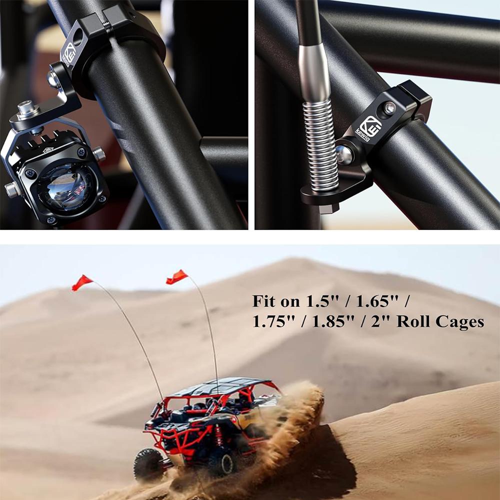 Aluminium Alloy UTV Whip Light Flag Mount Solid Heavy Duty Roll Bar Clamp 360° Adjustable Light Bar Mounts Bracket for Roll Cage
