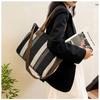 Big bag women's new fashion striped canvas versatile for commuting hand-held tote bag trendy single shoulder crossbody mommy bag