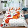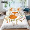 Fox Duvet Cover Set Girls Cartoon Fox Bedding Set Lovely Animal Theme Comforter Cover for Kids Teens King Polyester Quilt Cover