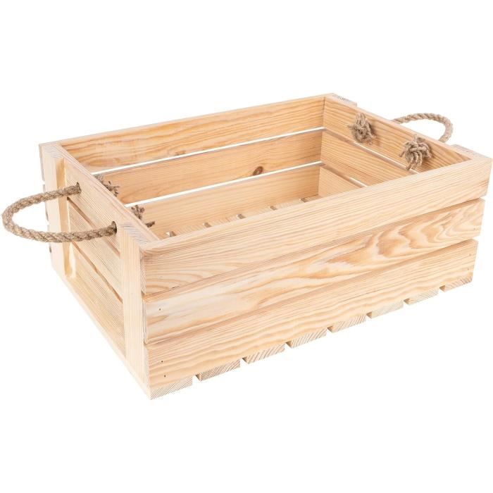 Boîte de rangement - CREATIVE DECO - Caisse en Bois Noël Naturel - 42 x 29 x 16 cm - Poignées en Corde de Jute