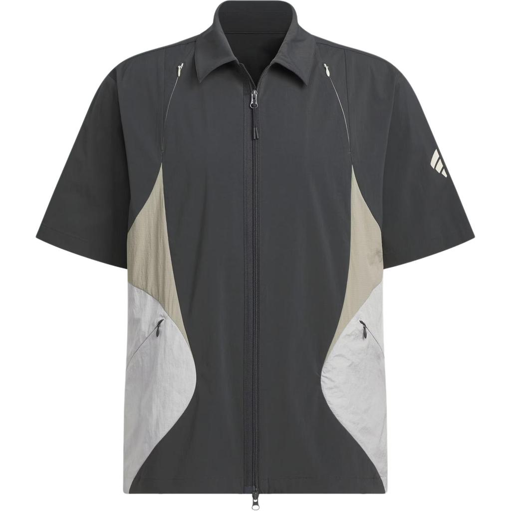 Adidas Future Style Zip Shirt Color Block Collar Casual Short Sleeve Shirt Men shirts Carbon-Black JL9960