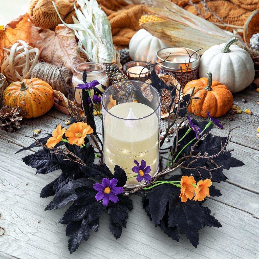 - 【Material】: Halloween-tema ljusstake krans är gjord av PP och tygmaterial som säkerställer lång livslängd och bevarar blommornas färg och form.