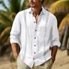 Vår Höst Enfärgad Bomull Hampa Blandad Krage Långärmad Vardaglig Casual Herrskjortor Herr