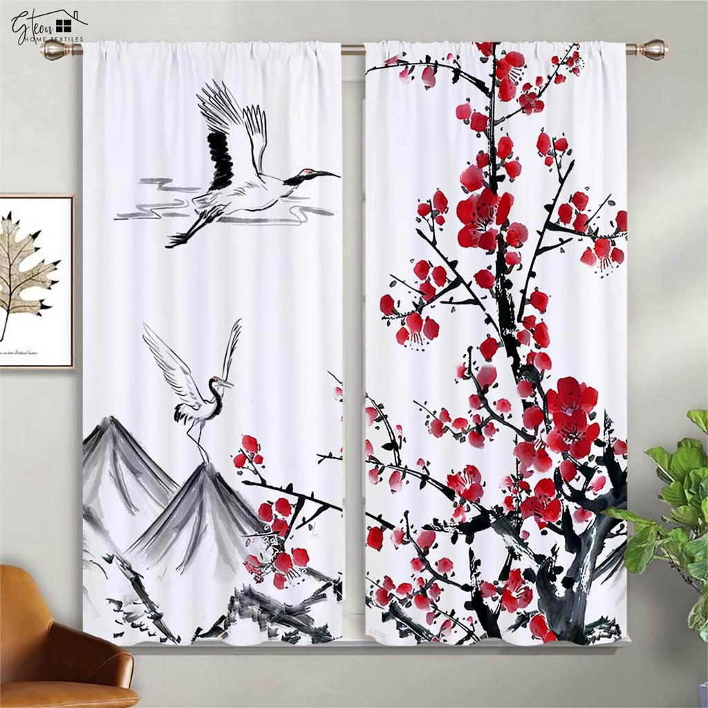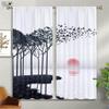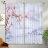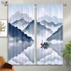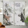 Kinesiskt landskapsmåleri 3D-tryckta gardiner Tuschmålning Kalligrafi Zen Elegant Klassisk Kanalfållsgardiner 2 stycken
