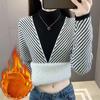 Velvet Integrated Sweater Base Sweater for WomenThickened and Warm Interior with Two Fake ItemsHalf High Neck Slim Fit Knitted Sweater Top