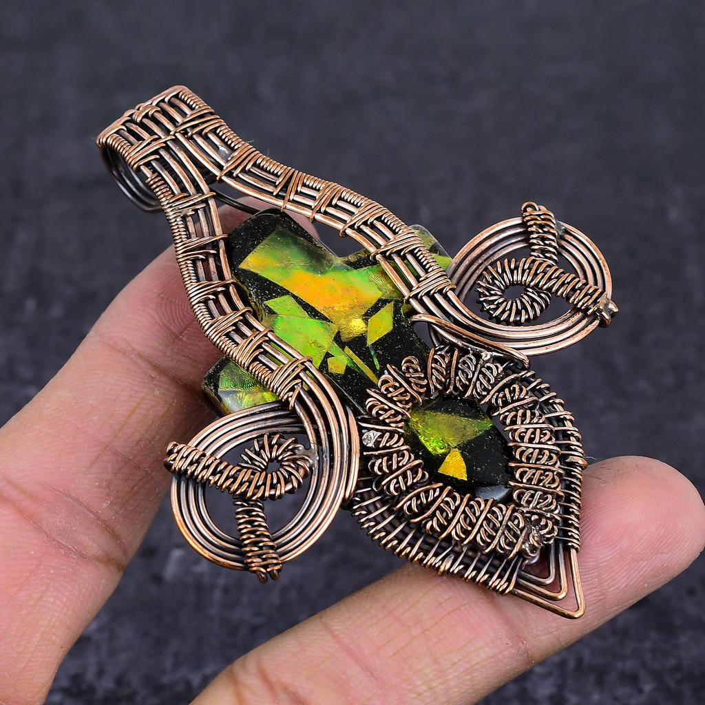 Natural Ammolite Gemstone Handmade Copper Wire Wrap Jewelry Pendant 3.35" B6J94