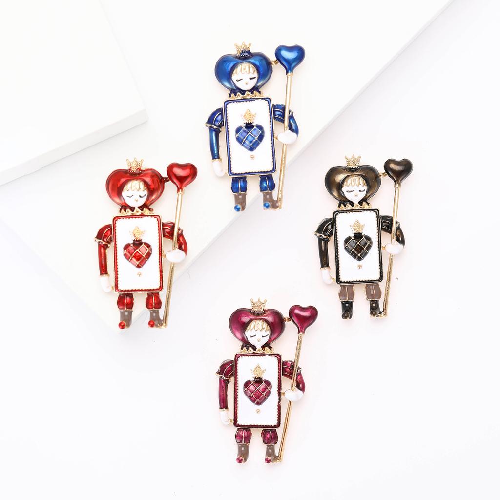 Kreativ Retro Legering Emalj Röd Spader Soldat Brosch Mode Temperament Herr- Och Damkläder Korsage Smyckesnål