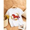 Barn T-shirt med tryckta blommor, kort ärm, rund hals, bomullstyg, flickors avslappnade stilfulla topp för sommaren