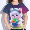 Roliga flickors t-shirts sommar kortärmad topp tecknade djur katt 3d-tryck 2025 flickkläder mode vardagliga t-shirts