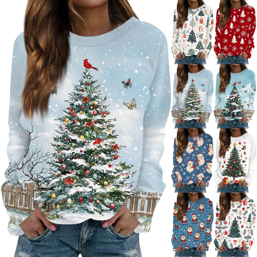 Damblus Casual Långärmad Tryckt Rundhalsad Pullover T-shirt Topp