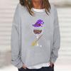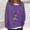 Dam Casual Mode Vintage Tryckt Långärmad O-Hals Sweatshirt Lager Pullover Topp
