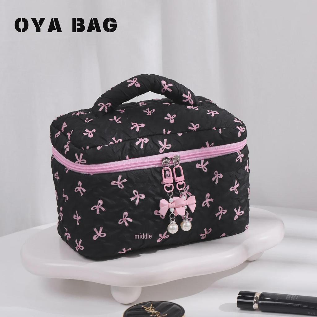Kosmetisk väska med präglad plisserad rosett - Rymlig, exklusiv multifunktionell förvaring.